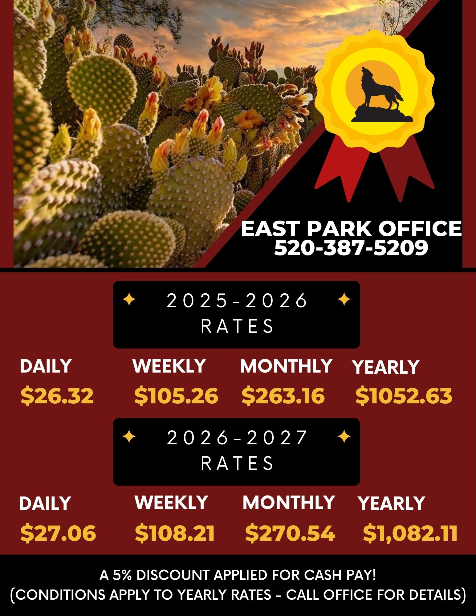 **Yearly rates are only available to fully self-contained vehicles AND to applicants who have completed (3) months at the monthly rate.